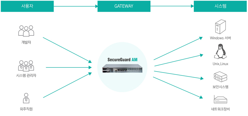 • - 시스템 접근제어는 시스템에 대한 접근통제와 행위감사를 주된 기능으로 하는 솔루션으로, 정보시스템에 접속하는 모든 사용자는 시스템 접근제어를 거쳐서 목표 시스템에 접속하여야 합니다.