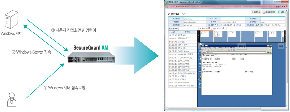 • - 각 작업 PC에서의 내부 시스템으로의 접속 이력 및 행위 이력 파악 가능