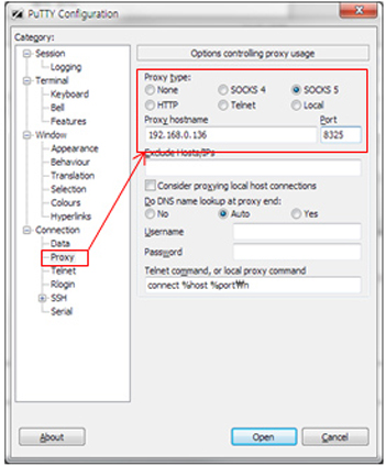 SOCKS5 표준 프로토콜 사용