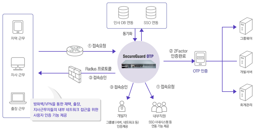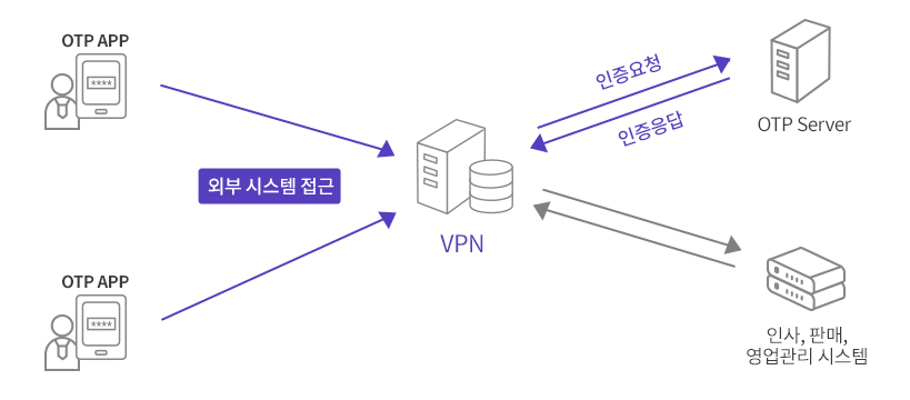 SecureGuard OTP는 이중보안이 필요한 다양한 시스템에서 연동하여 적용 가능합니다.