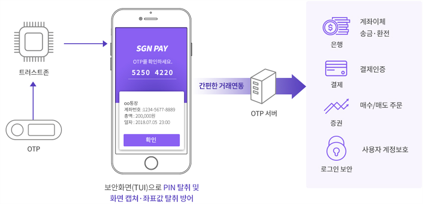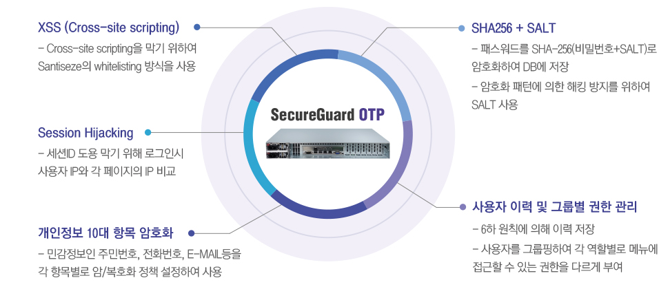 SecureGuard OTP는 일회용 패스워드 생성 솔루션으로 사용자의 안전한 패스워드 관리는 물론 비 인가된 사용자의 시스템 접근을 통제하는 보안 솔루션입니다.