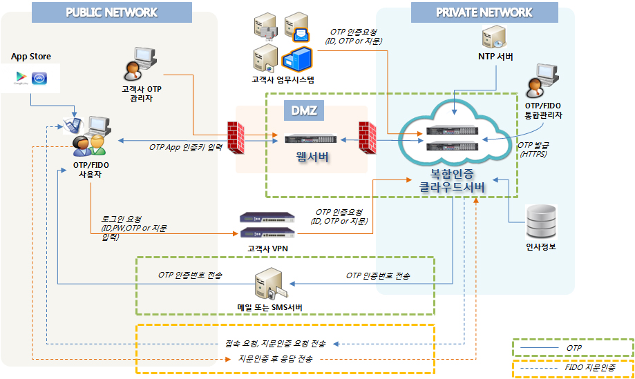 • 기존 인증체계와 복합인증 서비스를 접목하여 강력한 추가 인증